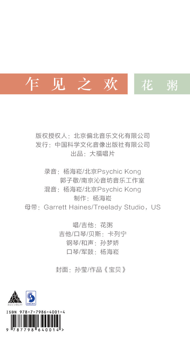 这是一个新的开始,是潮水退去后在沙滩上留下的第一个足迹,就像专辑的名字,《乍见之欢》。专辑包括 11 首歌,创作时间跨越三年,是一张实实在在的自选集。花粥的歌曲很简单,一些少女的白描心思,或是一些胡思乱想的小故事,平淡如水娓娓道来,无论悲喜都不动声色。如果你以前从未听说过花粥,那么《乍见之欢》正是她希望留给你的第一印象。
